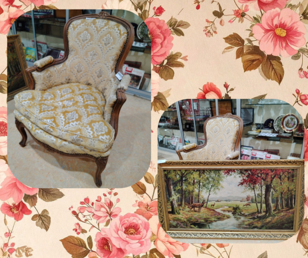 Vous êtes intéréssé(e) par "Fauteuil « Bergère » Louis XV et grand cadre vintage" ?